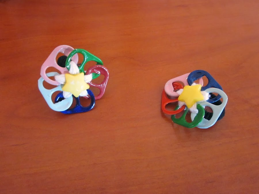 COLETEROS: ANILLAS DE LATAS PINTADAS EN DISTINTOS COLORES Y REMATADAS CON UN BOTÓN EN FORMA DE ESTRELLA