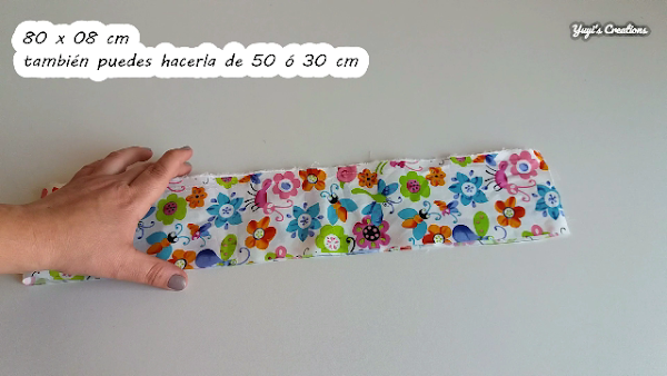 Para hacer las coletas: Podemos usar la medida del largo que quieras, yo lo suelo hacer de 80, 50 y 30 cm de largo y 8 cm de ancho. También