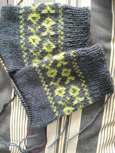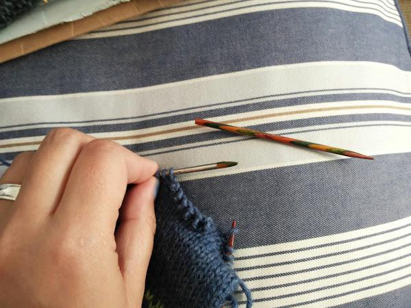 Como siempre, una vez definido el proyecto, me gusta tejer los dos calcetines en paralelo con agujas circulares. Lo que por suerte no me pasa siempre es que una de mis agujas intercambiables me deje tirada. Menos mal que tengo un par extra del mismo grosor, aunque no del mismo tipo. Nota mental, los próximos los tejeré con agujas cúbicas cromadas, o algo parecido.