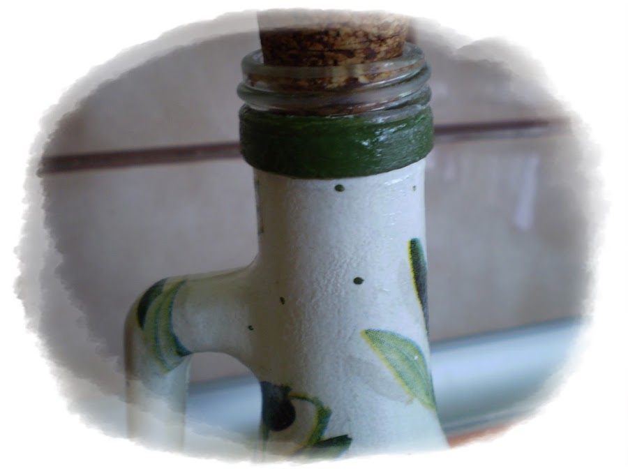Se trata de una aceitera que he transformado con pintura y servilleta.