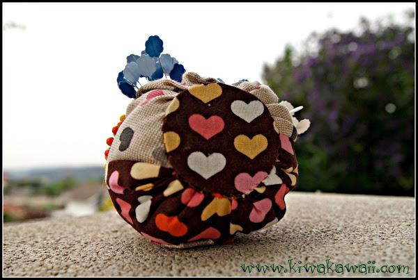 Me di cuenta cuando terminaba, que elegí botones diferentes para los ojos... se parecen mucho, pero son tamaños distintos. Además debí ponerlos más juntos. Bueno, queda mono igualmente, jejeje!