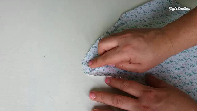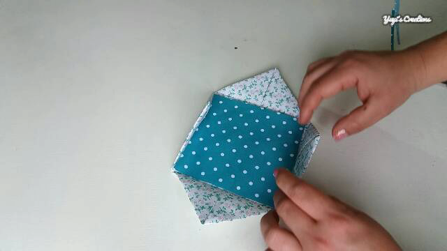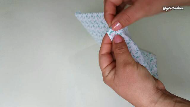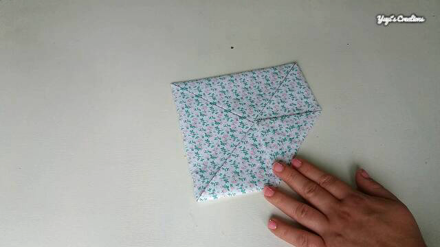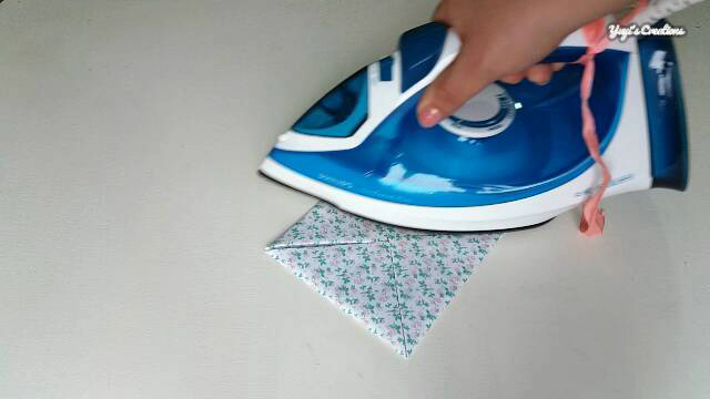 Volvemos a repetir la misma operación, llevamos cada una de las esquinas hacia el centro y planchamos: