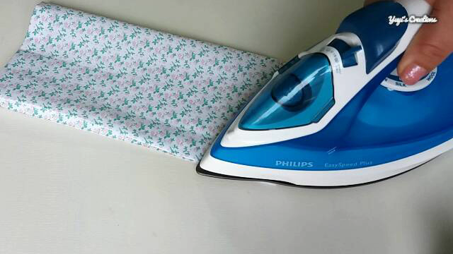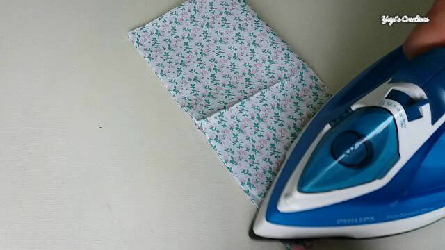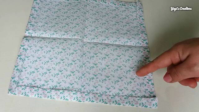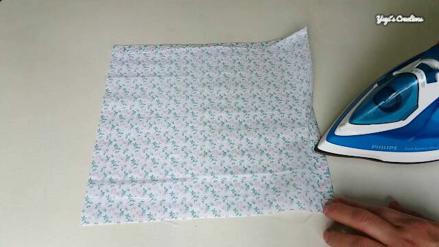 Una vez que lo tengamos marcado, vamos a doblar cada uno de los lados justo por la marca, para ello vamos a poner la tela con el derecho hacia abajo, doblamos por la marca y planchamos.