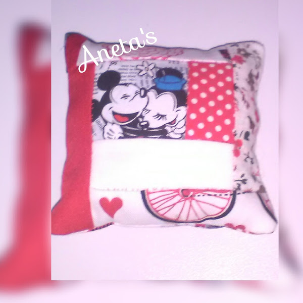 Bueno, el rojo mi hija María :) ( ella ha cosido los trocitos a mano, ya que está aprendiendo) y el celeste lo he hecho yo ( a maquina ).
