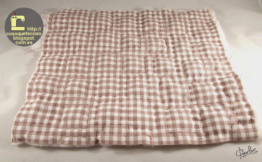 Esta loneta de cuadros la he acolchado a cuadros con un hilo muy parecido y en la foto es muy difícil de apreciar.