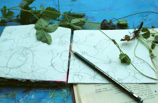 Teníamos un tema pero la técnica era libre... yo me fui por lo fácil! (lo reconozco) opté por el dibujo y las acuarelas. Lo primero fue salir al jardín y agarrar un par de ejemplares y manos a la obra
