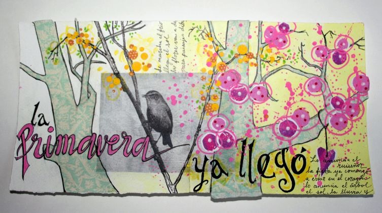 y ya que estamos... saquemos los acrílicos! quería algo tenue, del blanco invernal al amarillo primaveral, quería también muchos árboles pero finalmente ahí me quedé, ya sabes que me gusta lo sencillo, un título no podía faltar verdad?