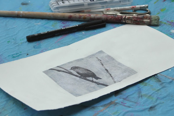 Elegir una imagen fue difícil, porque le había echado el ojo a varias pero bueno, aquí está esta de un pajarito que encontré en el periódico del día. Mi primera idea fue hacer un garabato muy sencillo y ya está pero de a poco me fui animando...