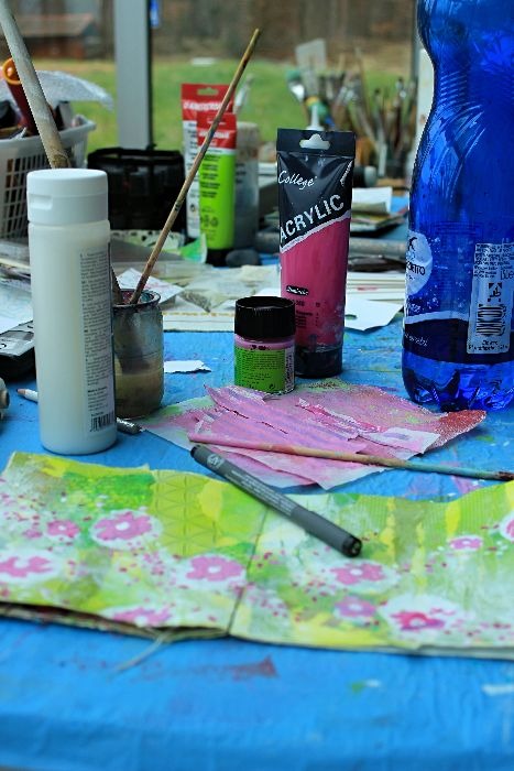rasgar, que gusto! y embarrarse más! me gusta hacerme mis propias plantillas, compradas tengo muy pocas. En esta ocasión rasgué también las formas que quería usar.