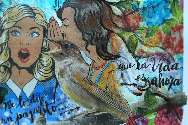 Como siempre: hoy viernes mostramos este desafío 9 y ya están las directrices para el desafío 10 que presentaremos el próximo viernes. Todo está en el grupo mixed media y cia de FB. Si vas llegando tarde no importa, puedes hacer estas actividades cuando desees, si lo que buscas son "impulsos" o ideas para tu embarre mixed media personal. En el grupo de FB está toda la info necesaria.