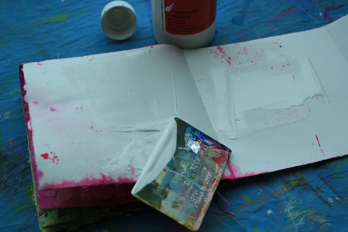 Tanto rosa de la semana pasada traspasó mi página... y como de todas maneras necesitaba el gesso pues de perlas, el gesso es cubriente! cubre el color pero también los poros del papel