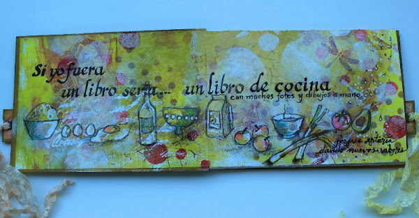 Y así ha quedado mi página, como sueño que yo sería si me convirtiera en un libro, sería con esos tonos cálidos que invitan a comer, sería informal con dibujos simples y algunos pies de página los haría con mi puño y letra... estaría faltando sólo las fotos, muchas fotos de los "paso a paso" de las recetas, porque no me gustan mucho los libros de cocina sin fotos.
