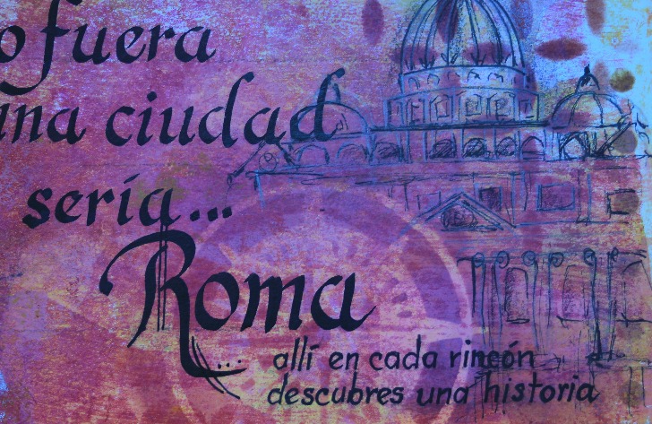 Un poco de sombras aquí y allá y un dibujo libre de la basílica de San Pedro. Usando además del acrílico, carboncillo y tintas para un resultado muy mixed media!