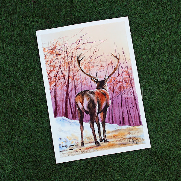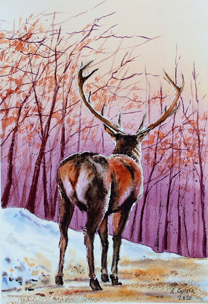 Y este fin de semana pasado, el protagonista de nuestra acuarela ha sido un ciervo, también en medio de un paisaje nevado. Este fue el resultado: