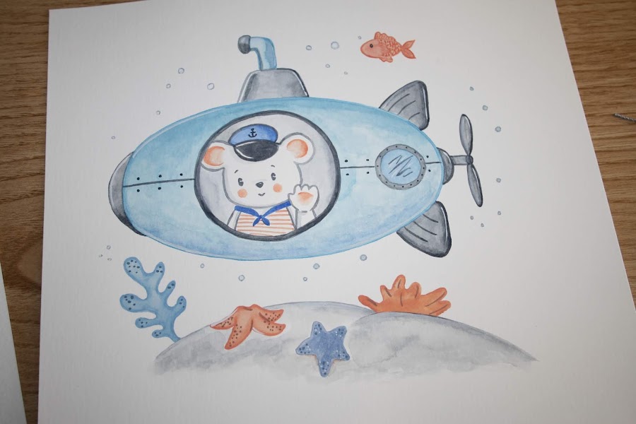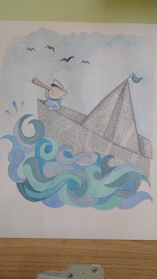 Ya sabéis que hemos escogido el tema marinero para ambientar su habitación (cuando la tenga lista os enseño el antes y el después) y de entre todos los tipos de pinturas, al final ganaron las acuarelas por ser más tenues y cálidas para el cuarto de un bebé.