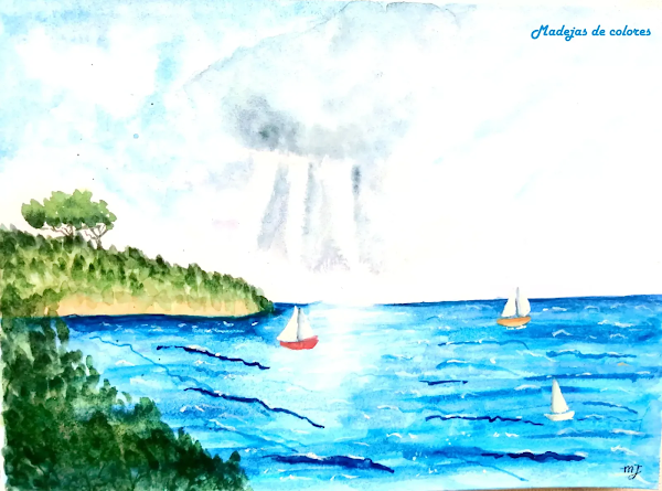 De esta especialmente no estoy muy estoy satisfecha. El cielo y el mar es algo muy complejo de realizar, además hay que tener el papel apropiado para ello, del que no disponía.