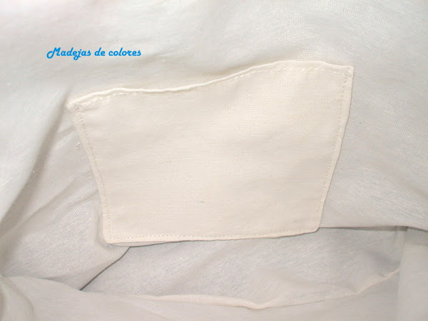 El forro en color crudo con un bolsillo para poder guardar cosas pequeñas y no se pierdan en su interior.
