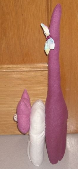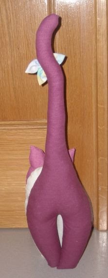 Y por detrás. Aunque no se aprecia mucho en la foto, está realizado con una tela con degradado de color. Las patas traseras son mucho más oscuras que el rabo y la cara está hecha con la parte más clara de la tela.