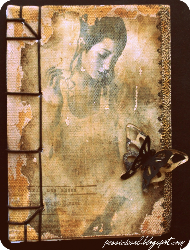 La primera, es sin lomo, como la tapa es lienzo y es mucho más flexible no cuesta nada abrirla y me pareció bonita, por cambiar...otra de mis pasiones las transferencias, esta vez de una imagen que tenía y que me gustaba mucho; me parece muy sencilla pero que a la vez transmite mucho y te quedas embobada mirando por si la chica se moviese, porque es la sensación que me da cuando la veo, que de un momento a otro va a hacer un movimiento suave, con la mano, con los ojos, con la cabeza...