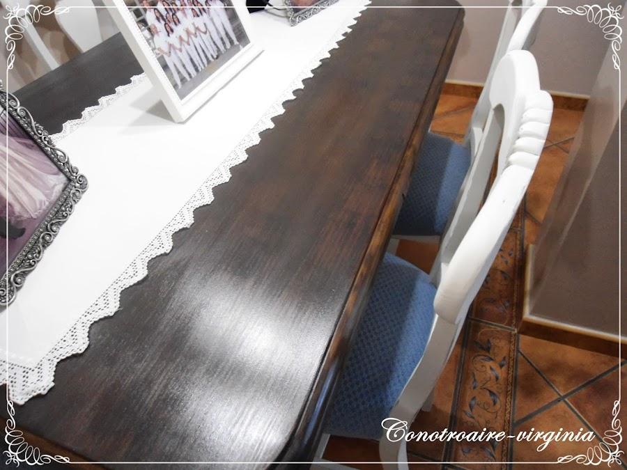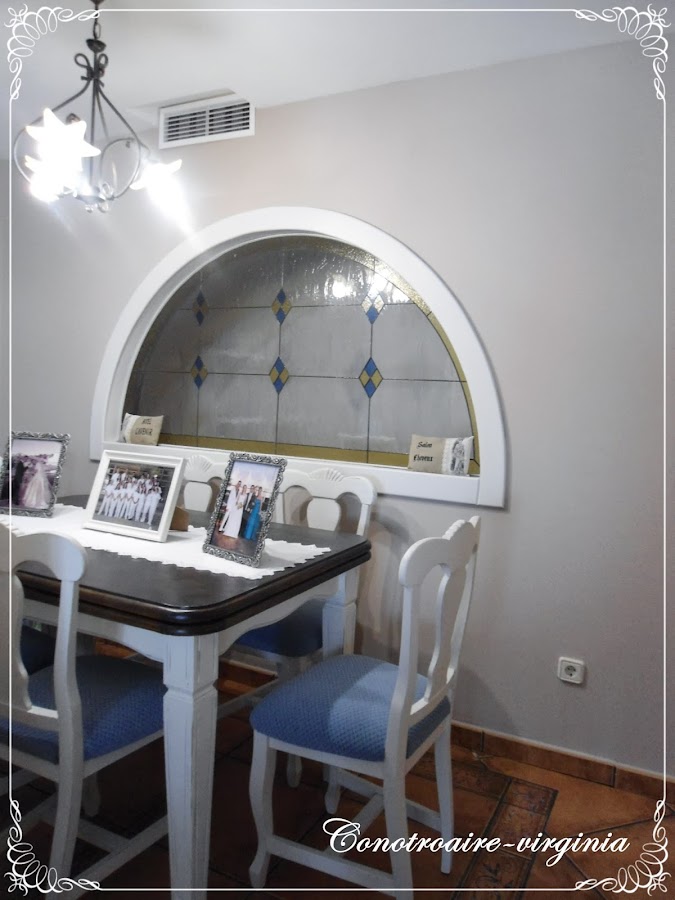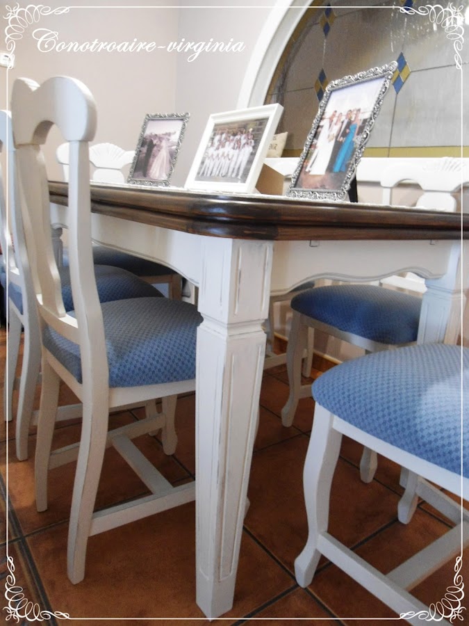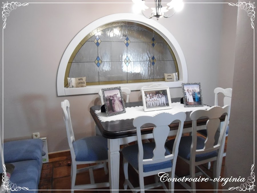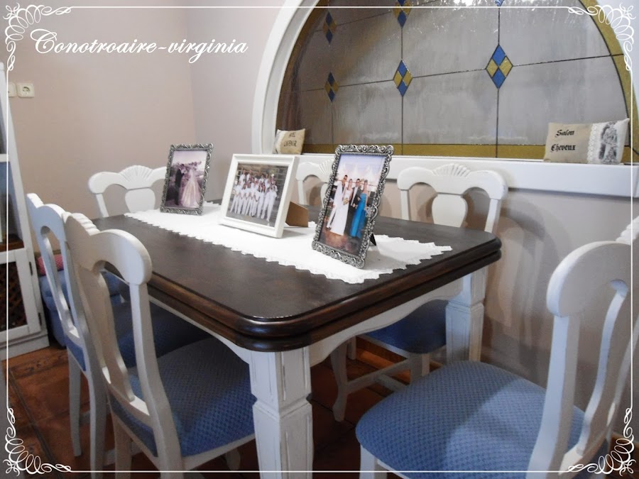 Y para terminar, las sillas y mesas del comedor ¡que ganas tenía de verlas terminadas! llevo un año con el salón en dos colores, ja,ja,ja.....asi estaba....