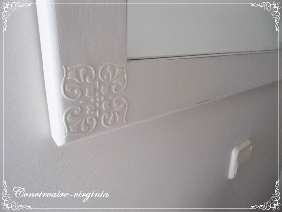 En los cajones y en las esquinas del espejo, detalle con stencil el relieve.