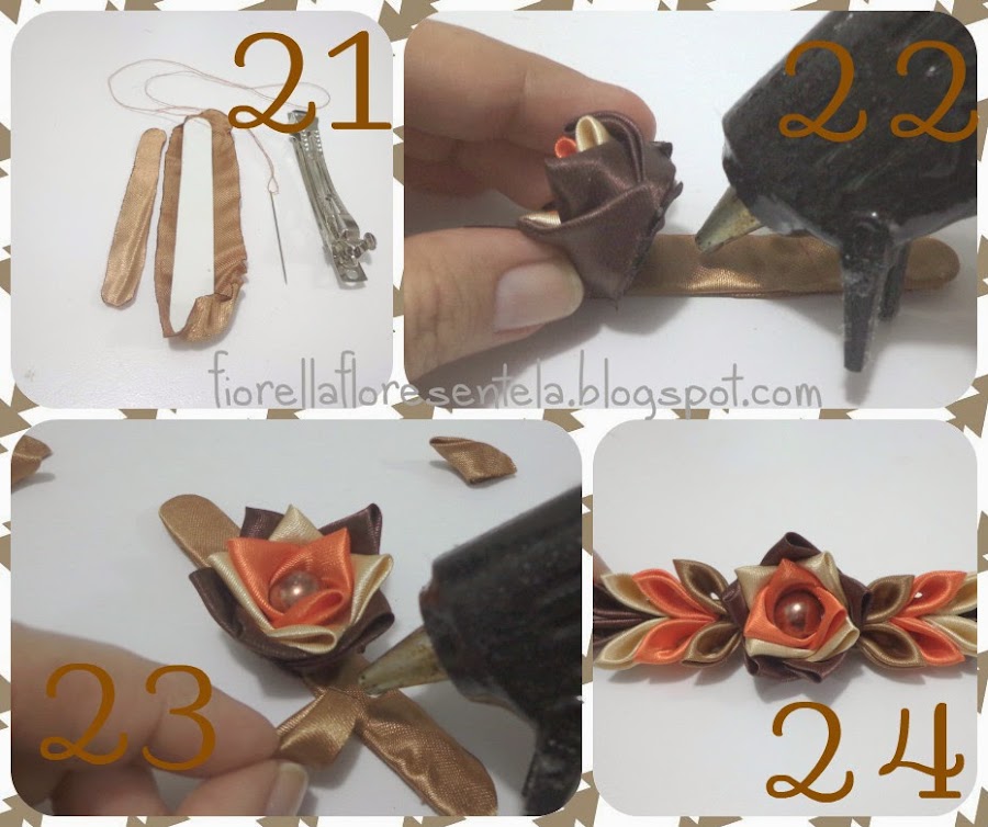 22. Por el lado mas prolijo pegamos la rosa con la pistola de silicona.