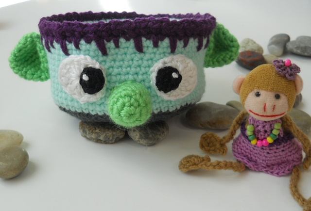 Hola a todos! Les quiero enseñar este monstruito en la técnica amigurumi, como puedes ver es una canasta pero como muchas veces me gusta crear algo que sirva para dos o tres cosas a la vez...