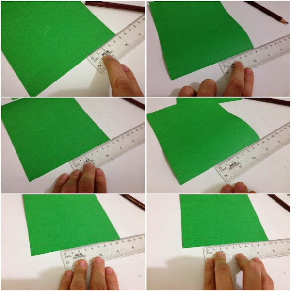 Vamos a marcar 5cm a lo largo de la pestañita que dejamos, eso en la primera, luego en la segunda marcaremos siempre 5cm pero dejando 1cm de margen, luego para la tercera marcamos 5cm pero dejando 2cm de margen y así sucesivamente para todas con el fin de hacer una pestañita en degrade en cada una. Se ve mejor en las fotos.
