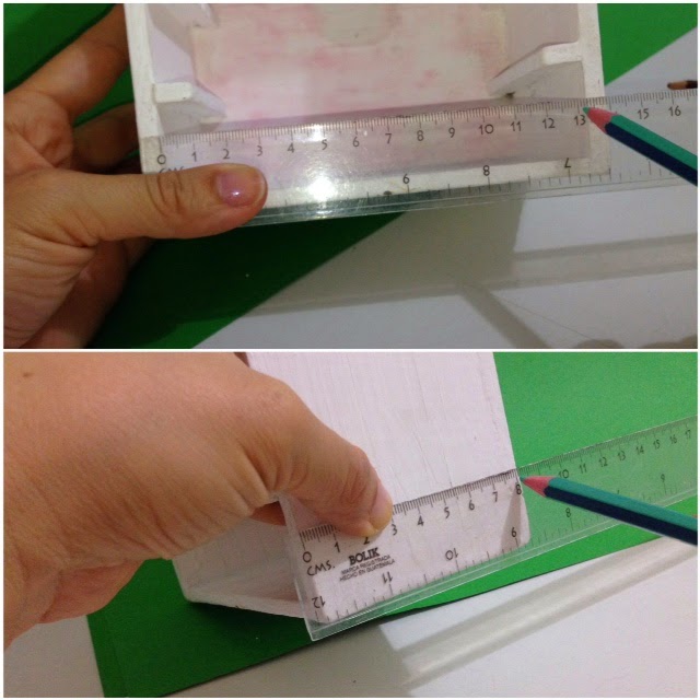 Medimos lo ancho y lo alto de la cajita, en mi caso me dio 13.3cm y7. 5cm, esto nos servirá para hacer las carpetitas o folders.