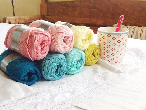 Para estos proyectos he empleado un hilo de algodón 100% que he adquirido en la tienda Sostrene Grene. Os recomiendo encarecidamente estos hilos porque son muy suaves al tácto y bastante fáciles de trabajar. Los hilos no se quedan deshilachados como ocurre con otras muchas marcas; al contrario, el trabajo queda muy limpio y uniforme.