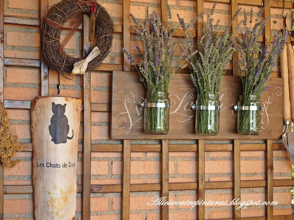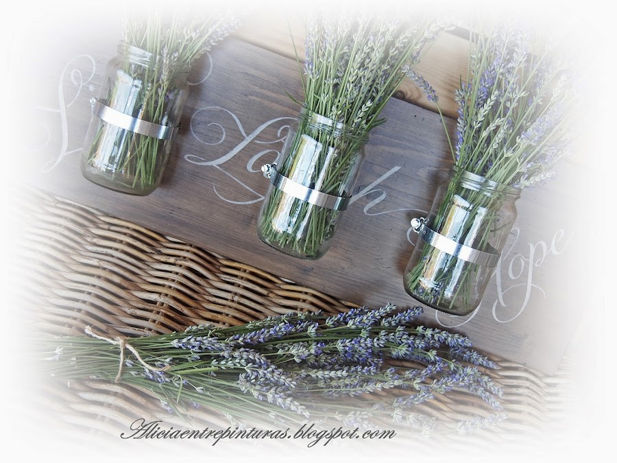 Como veis es algo muy sencillo y tremendamente decorativo. Se trata de unos tarros de reciclaje anclados a un soporte de madera y que podemos utilizar para poner flores frescas en agua o flores secas, poner plantas aromáticas, o cualquier otra cosa que se os pueda ocurrir como poner piedras, conchas, cubiertos.... no se.