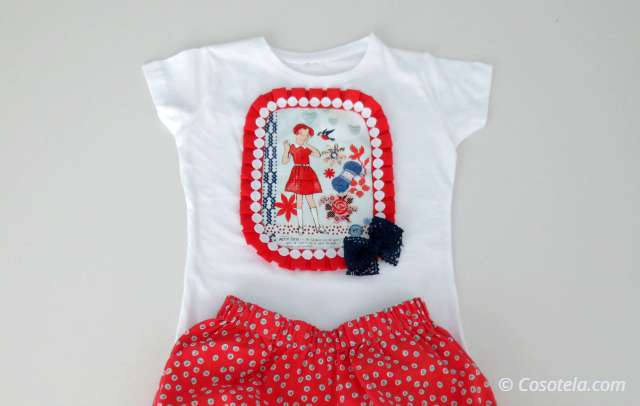 Lo primero irme de cabeza a la mercería con camiseta, aplicación y bombachos a elegir los adornos.