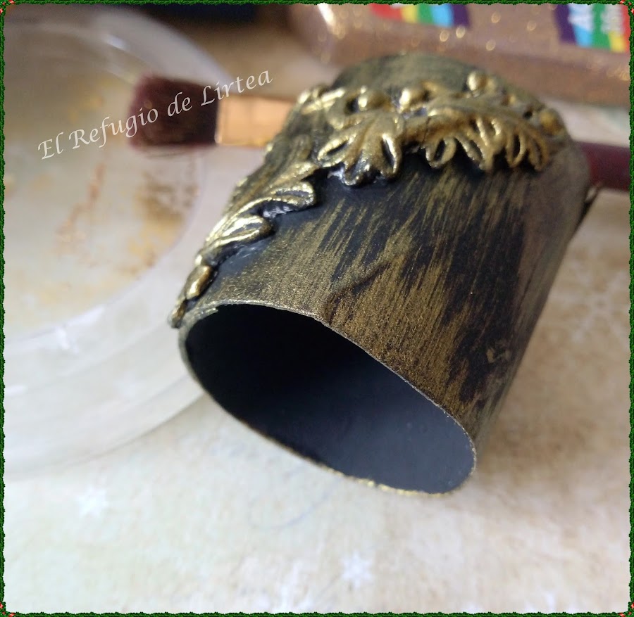 Luego damos pinceladas hacia arriba y hacia abajo sobre el servilletero dejando el centro sin pintar para conseguir el efecto que os muestro en la foto.