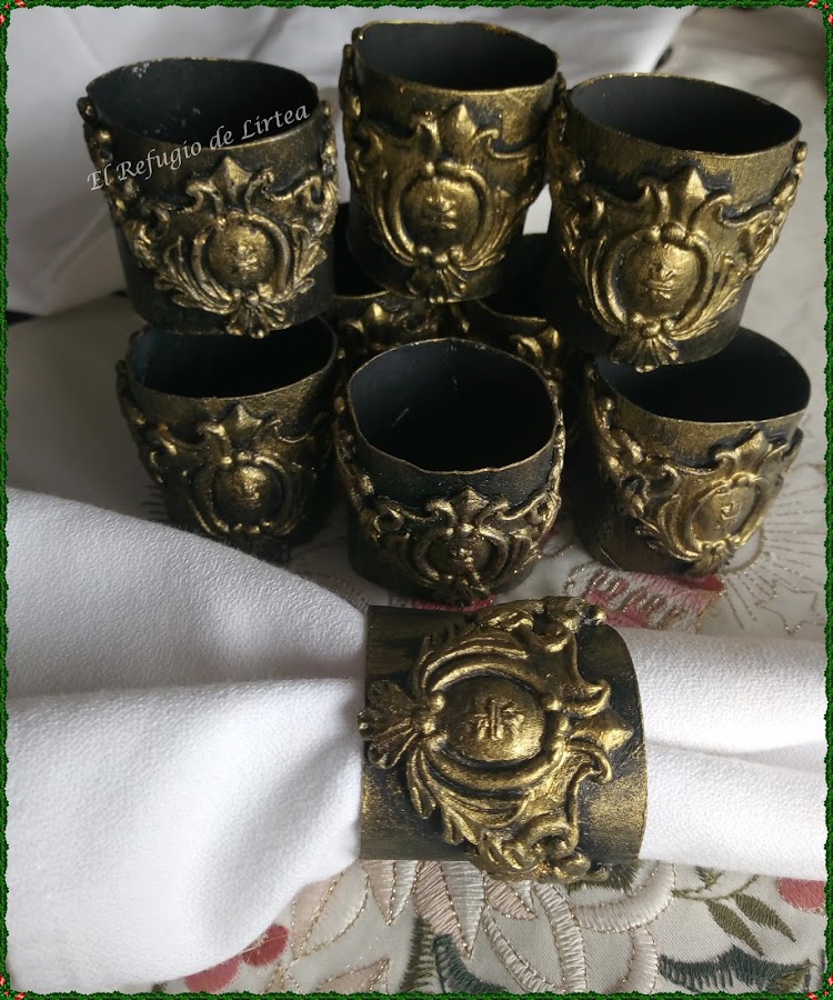 Son unos servilleteros que he realizado reciclando los tubos de cartón del papel higiénico.