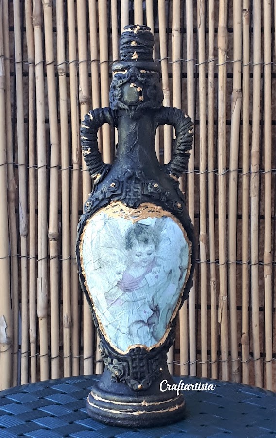 Dejaremos secar y empezaremos a aplicar la pátina. Utilizando un pincel de cerdas duras y con la técnica del pincel seco vamos pintando la figura, no queremos cubrirla del todo, queremos que se ve algo del fondo negro.