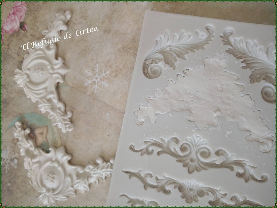 Hago la figura con pasta de modelar y la ayuda de los moldes y antes de que se seque la pego sobre cada servilletero para que tome la forma.