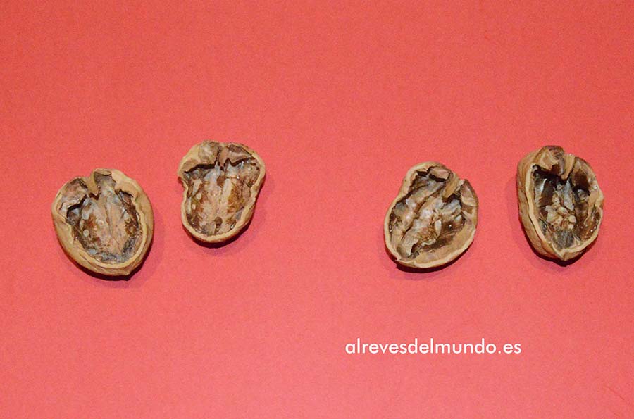 - Al abrir las nueces, procurad que no se rompan las cascaras. Y ponedlas en parejas para que a la hora de pegarlas, encajen perfectamente.