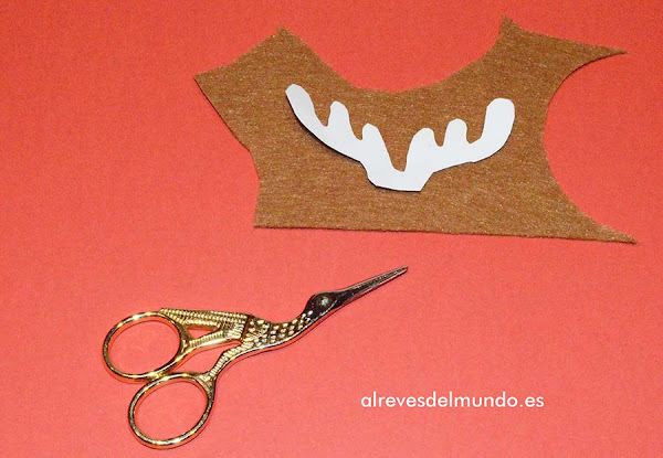 - Hacemos una plantilla de papel, para los cuernos del reno