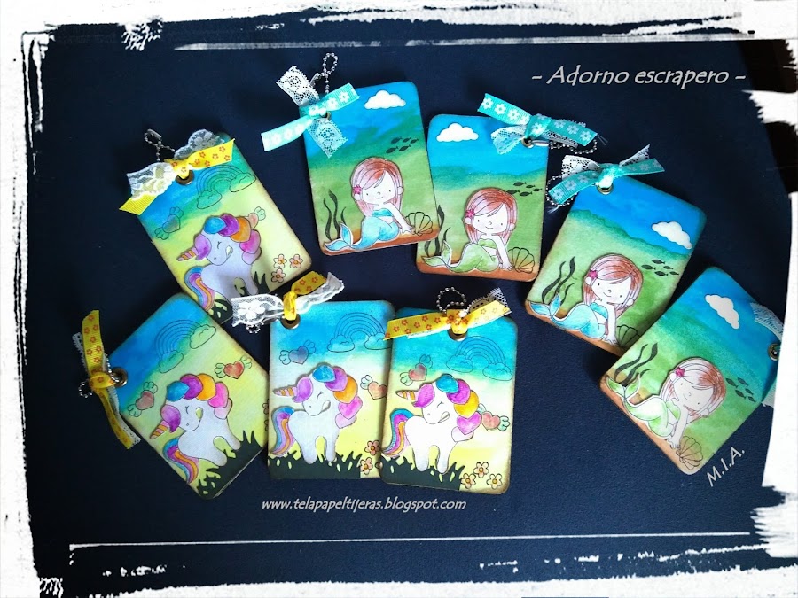 Usando unos sellos preciosos y utilizando acuarelas, lápices acuarelables y sellos estampados, he hecho estos llaveros para regalar...