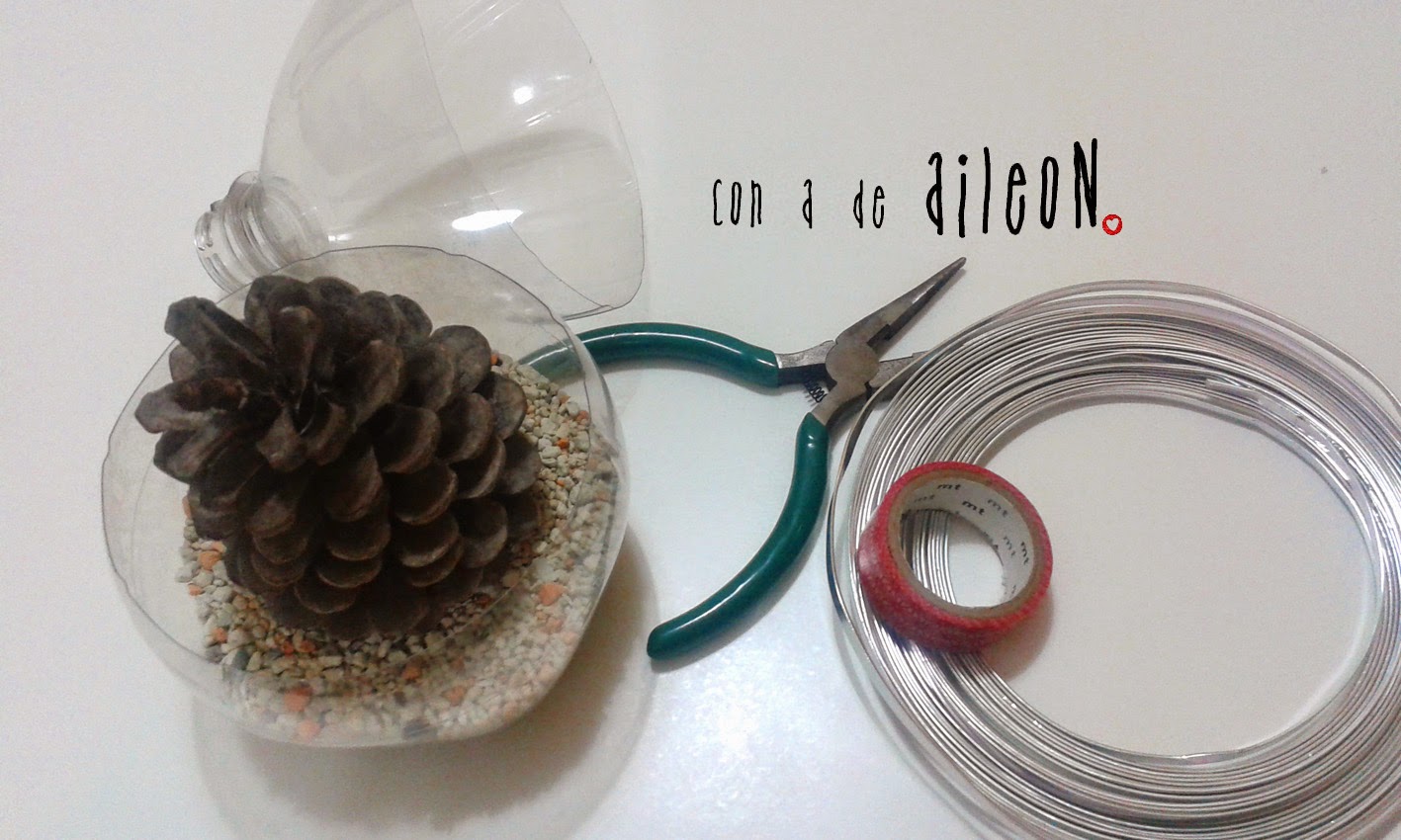 En principio iba a hacer como una bola de nieve con agua pero lo veo muy arriesgado para el PET, asi que preferí solo adornar.