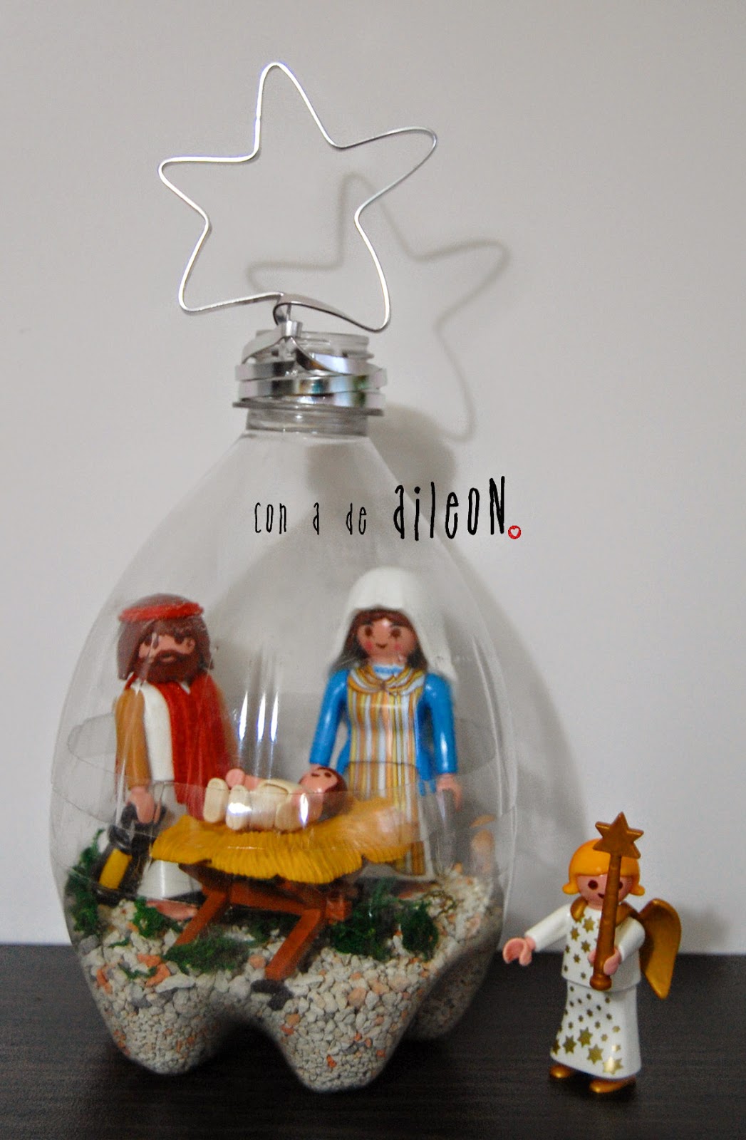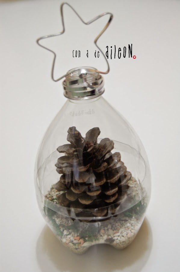 En principio iba a hacer como una bola de nieve con agua pero lo veo muy arriesgado para el PET, asi que preferí solo adornar.