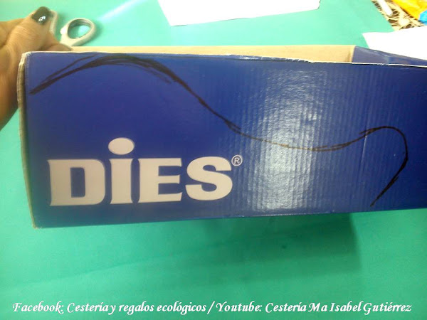 Primero haremos un molde de papel... Dibujaremos sobre una hoja de papel que pegaremos a un costado de la caja, tal como se aprecia en la foto....