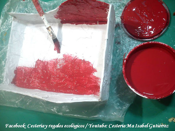 Pintamos. Lo podemos hacer con todo tipo de pintura, en este caso estoy utilizando pintura vinílica con base de agua (es la que regularmente usamos para pintar paredes)...