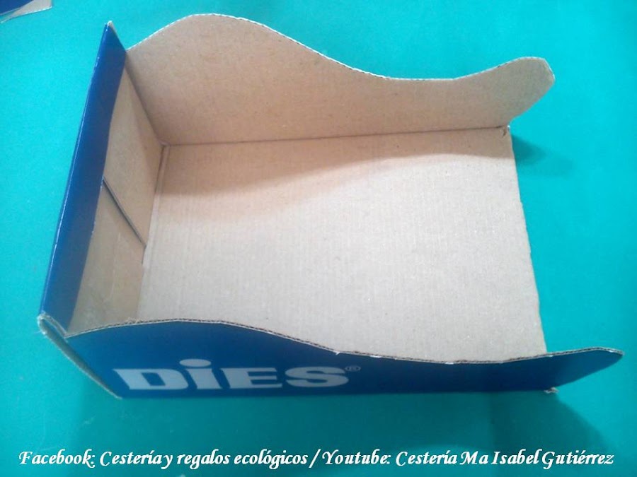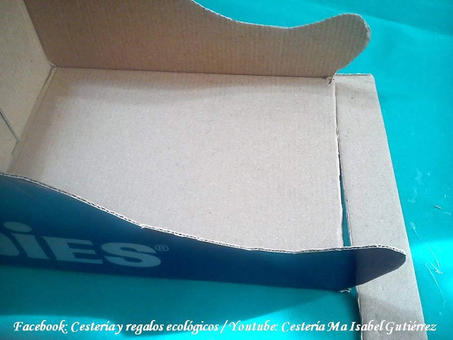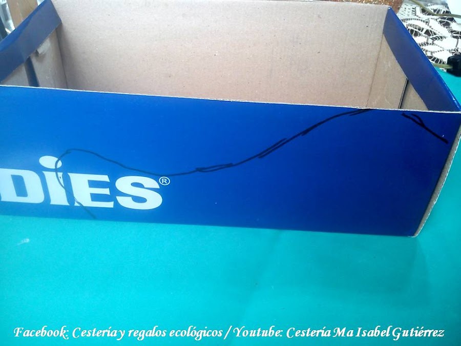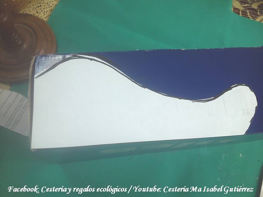 Empezamos a dibujar desde el extremo izquierdo, iniciando unos dos centímetros hacia abajo del alto de la caja, hacemos una curva suave subiendo hasta el tope de la caja, luego bajamos en otra curva suave y volvemos a subir haciendo como una especie de montaña mas pequeña que la anterior, bajamos la curva metiendo el trazo un poco hacia abajo... y recortamos por toda la línea que trazamos, volvemos a acomodar en un costado de la caja como se ve en la imagen...