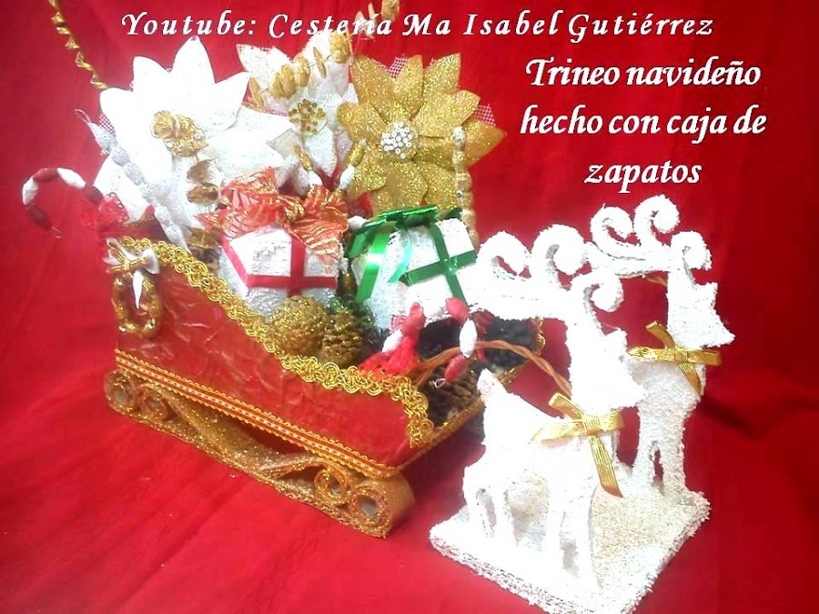 Y solo resta pegar las piezas inferiores en los dos costados del trineo y quedaría listo! rellenamos con adornos a nuestro gusto. Los renos blancos también los hice con cartón, y en el próximo tutorial te comparto el paso a paso. Si te ha gustado, te agradeceré mucho me ayudes a difundir el reciclado compartiendo mis trabajos en tus redes sociales, hasta la próxima!