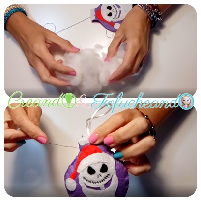 Le puedes poner el motivo navideño que quieras o más te guste: bastones,campanas, casita de jengibre,un copo,o como yo,un simpatico esqueleto,jajaja.