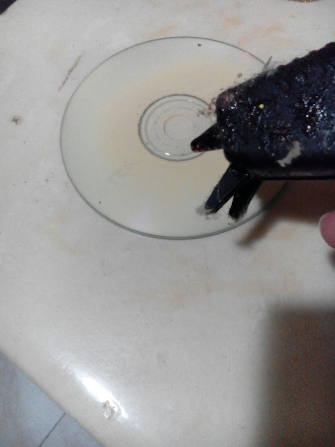 En el CD se pega los pétalos con la ayuda de la pistola de silicón caliente