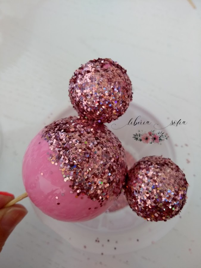 Ahora viene lo divertido, pondremos cola por todo y con un pincel la esparciremos sin dejarnos huecos sin encolar, una vez tengamos encolado todo es hora del "brilli brilli" iremos tirando purpurina por encima, teniendo en cuenta que habrá por todo, es mejor poner un recipiente abajo para que lo que no se quede pegado caiga dentro y podamos reutilizar otra vez.
