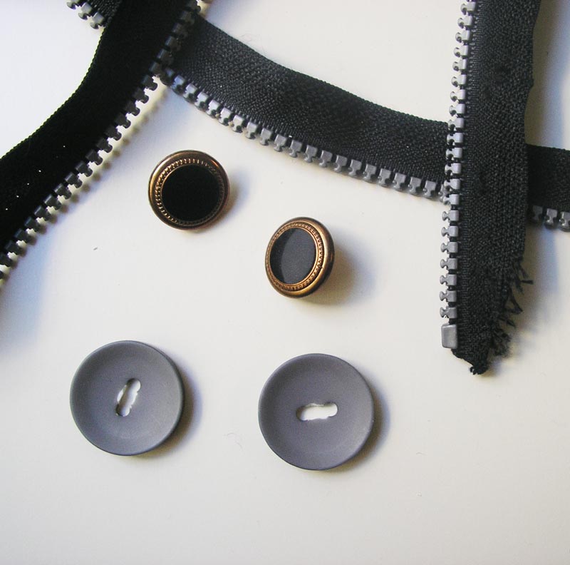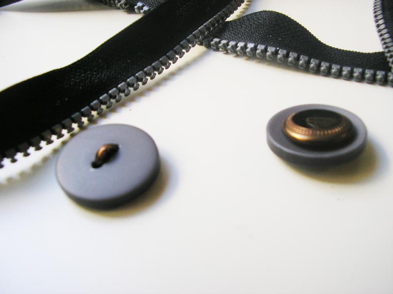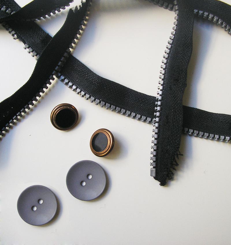 Materiales: botones y cremallera rota.