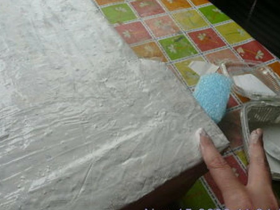 FernandaP aplica con brocha una capa del producto que se emplea para igualar las paredes, alisando con los dedos humedecidos para facilitar el lijado.